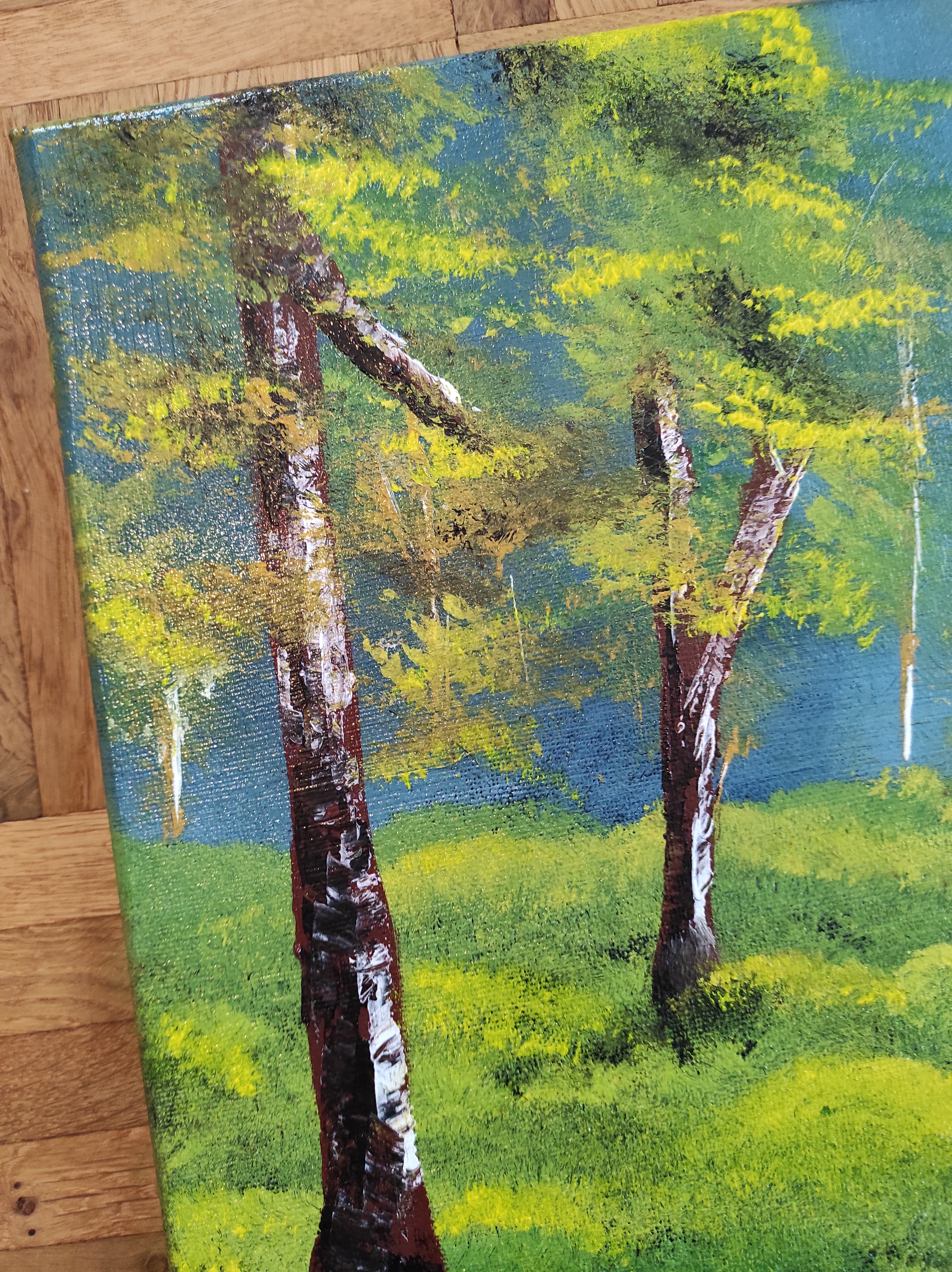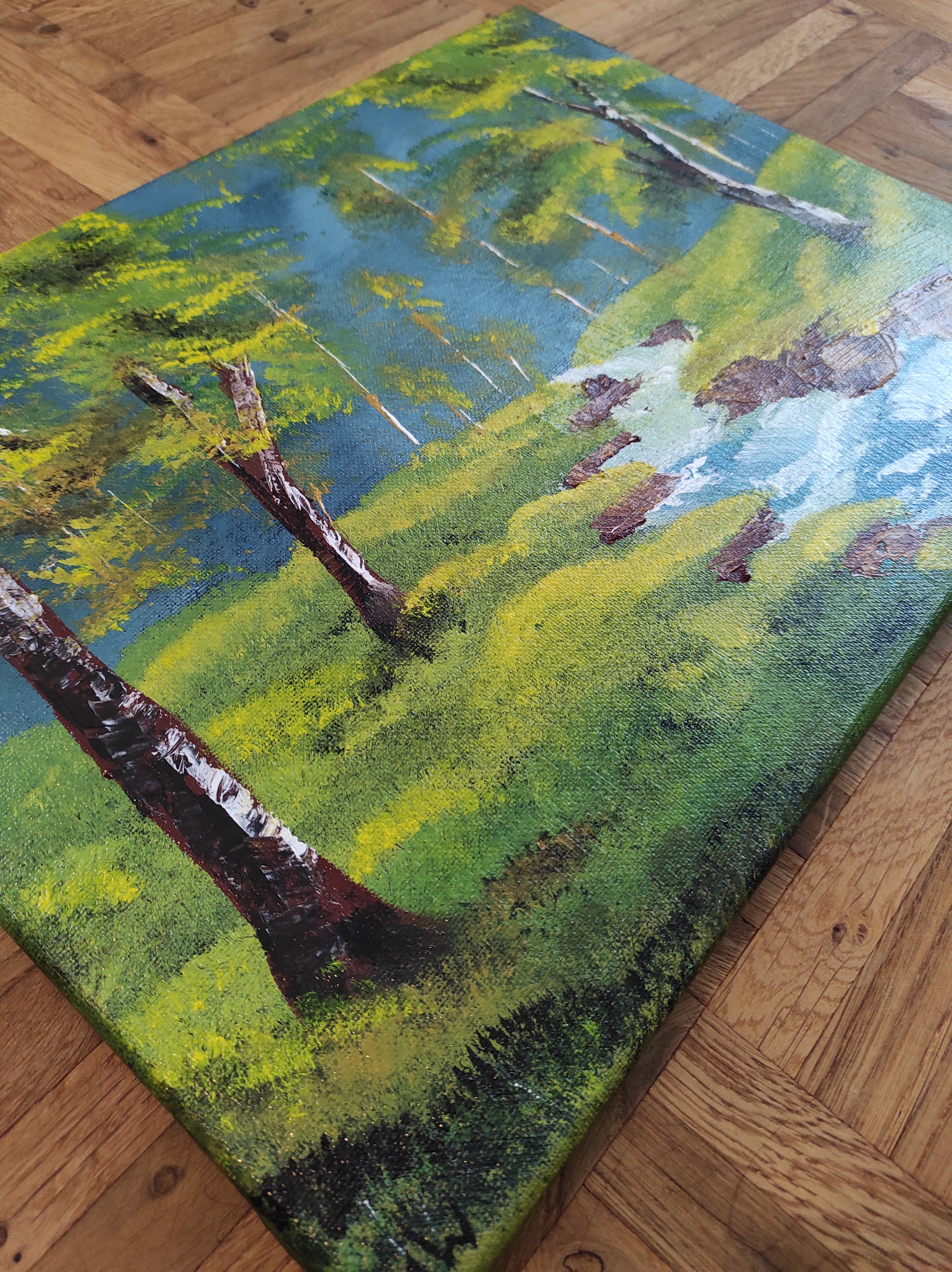 Für dieses Kunstwerk wurde mit Pinsel- und Spachteltechnik das Motiv aus dem Hintergrund herausgearbeitet, um so Tiefe in der Komposition zu schaffen.